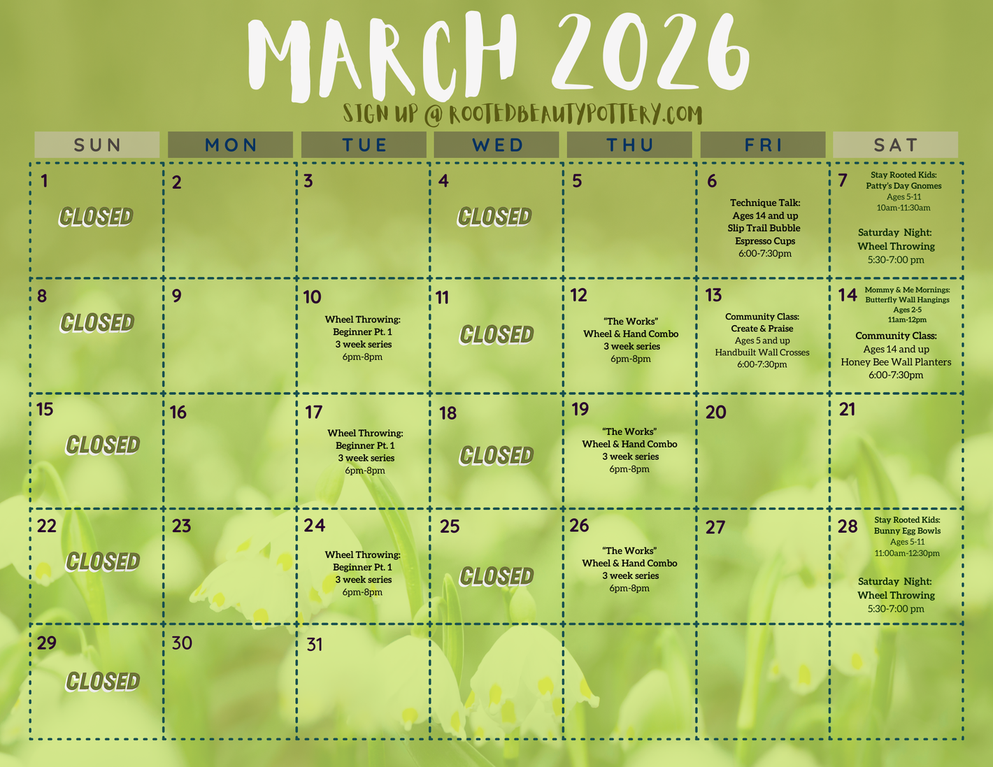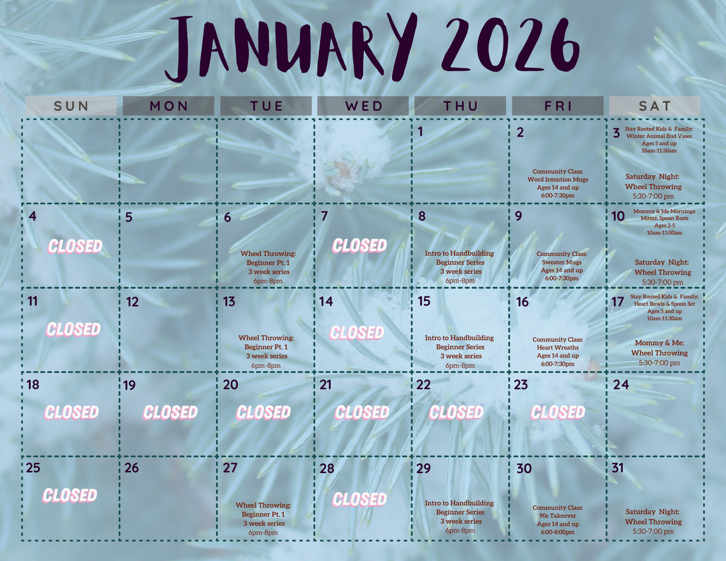We are a small pottery studio located in Myrtle Beach, South Carolina providing handmade clay items and a variety of classes to our community and beyond. Explore our current handmade beauties or class offerings. Get rooted in clay, your soul, and your faith through community and creating.