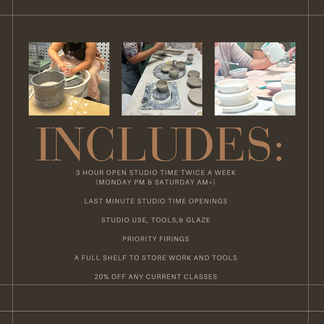 Reminder: clay is purchased through studio to guarantee the correct and successful firings for your pieces!